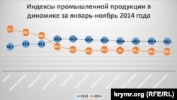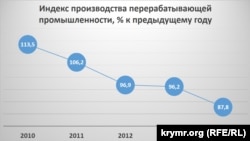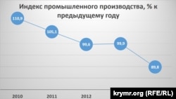 Протягом останніх п'яти років у Криму спостерігався спад промислового виробництва. Однак темпи падіння в 2014 році істотно збільшилися – у порівнянні з 2013 роком на цілих 10%.