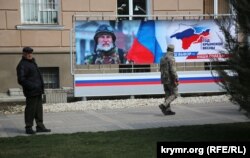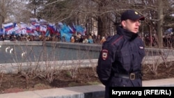 Сімферополь – У Криму з помпезністю почали відзначати річницю від дня «приєднання» півострова до Росії. У містах і районах проходять святкові концерти та збори, у школах – уроки, присвячені подіям «Кримської весни». За тим, як пройшов перший день свята в кримській столиці, спостерігав кореспондент Крим.Реалії.