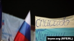 На вечір тут під численними російськими, кримськими і георгіївськими прапорами зібралися кілька тисяч людей.
