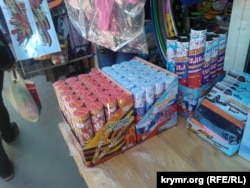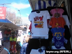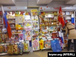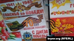 Напередодні 9 травня кримські крамниці, що торгують сувенірами, буквально завалені продукцією «переможної» тематики. Значки, наклейки, магніти, хлопавки, плакати, гірлянди – це неповний перелік товарів, виготовлених спеціально до річниці Перемоги.