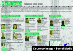 Волонтерські та правозахисні організації розпочали нещодавно акцію під назвою «Let my people go», аби привернути увагу до доль українців, затриманих або ув’язнених у Російській Федерації з політичних мотивів, розповідає голова правління «Центру громадянських свобод» Олександра Матвійчук. Разом із представниками української діаспори під час засідання Ради Європи перед початком обговорення ситуації в Україні активісти роздавали парламентарям інформацію про політв’язнів.
