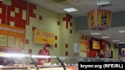 Ковбаса, в основному, місцева. Маркування «Дружба народів», що видно на ковбасі у вітрині. Був кримський радгосп, тепер це мультирегіональна торгова марка, входить до агрохолдингу «Миронівський хлібопродукт». М'ясокомбінат «Скворцово», що постачає ковбасними виробами весь Крим, взагалі належить нинішньому міністру сільського господарства Криму в уряді Аксьонова Віталію Поліщуку. Так що з ковбасою проблем немає. На привозному чи на своєму м'ясі працюють м'ясокомбінати – не знаю, але ковбас кримських брендів, причому досить якісних, вистачає. Асортимент розбавлений, як бачите, краснодарською продукцією, ціни порівнянні.