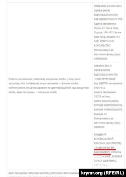 У державному Реєстрі підприємств і організацій Росії ми знайшли ще три однойменних підприємства з однаковими адресами реєстрації в Севастополі. Два з них заснували кіпрська компанія ТОВ «Корсіта Холдінгс Лімітед» разом із уже згаданим Владиславом Казьміним і ще одним членом сім'ї – Тетяною Казьміною.
