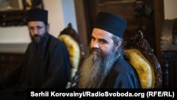 Керівник монастиря Кутлумуш ієромонах Хризостом (праворуч) та ієродиякон Хризостом. Київ, 17 вересня 2016 року
