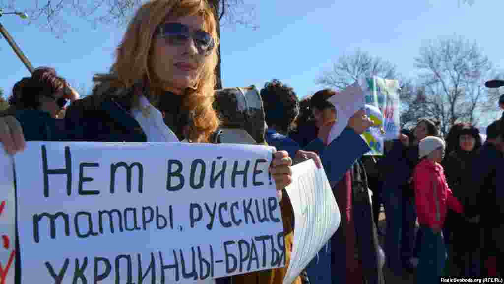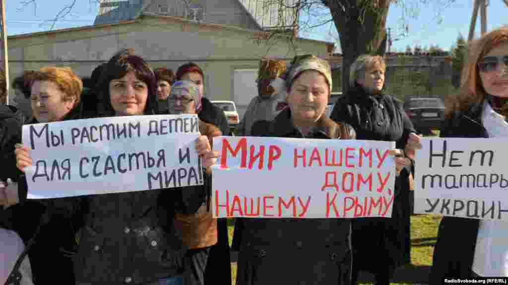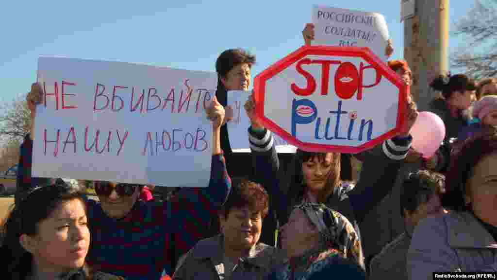 Кілька сотень кримських жінок на виїзді із Сімферополя поруч з масивом Кам'янка 3 березня 2014 роки провели акцію за мир і проти російської окупації Криму. Разом зі своїми дітьми і внуками вони вишикувалися вздовж автодороги з українськими прапорами, жовто-блакитними кульками та плакатами «Крим – це Україна», «Любити, а не воювати», «Стоп Путін!», «Ми ростимо дітей для щастя і миру», «Кримські татари, росіяни, українці за мир» та іншими. Згадуємо, як це було.