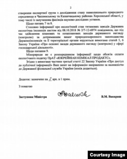 У вересні представники Мінекології України зверталися до ПрАТ «Юкрейніан кемікал Продактс» з проханням надати інформацію про виробничу діяльність її філії в Армянську, позаштатні ситуації та викиди забруднювальних речовин, починаючи з 20 серпня. Але в компанії повідомили «про відсутність можливості надання відповідної інформації», розповів заступник міністра екології та природних ресурсів України Віктор Вакараш.