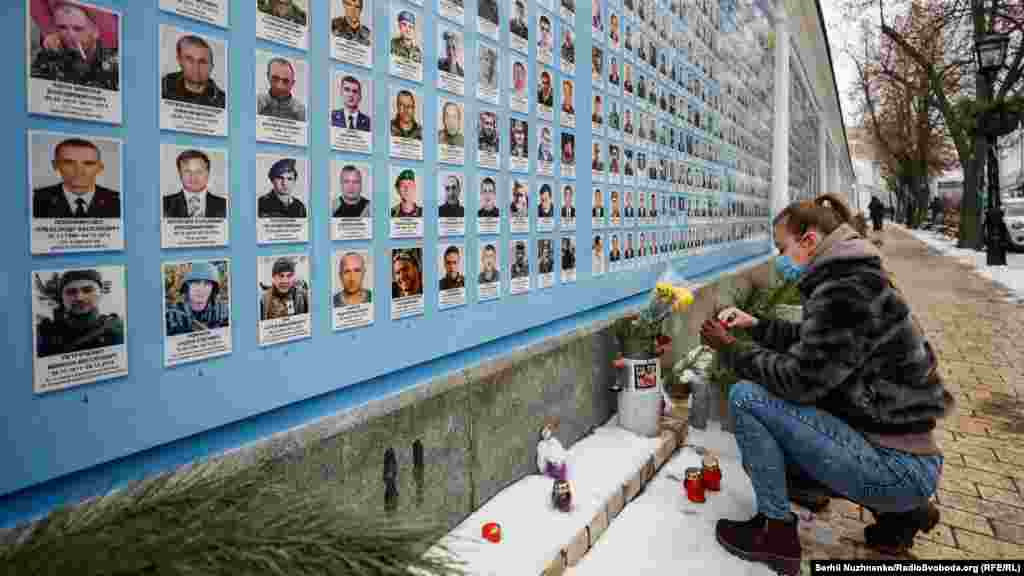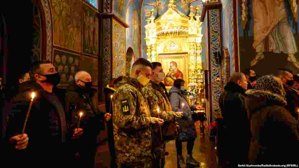У столиці України 21 січня вшанували загиблих оборонців Донецького аеропорту та усіх загиблих у війні з Росією на Донбасі: у Михайлівському Золотоверхому соборі ПЦУ відслужили панахиду.