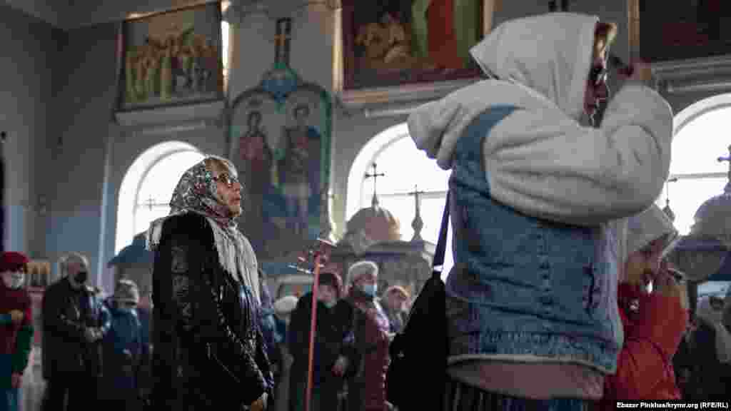 Багато вірян були в масках і намагалися дотримуватися дистанції між собою. Частину різдвяної служби митрополит Кримської єпархії ПЦУ Климент присвятив молитвам за здоров'я українців у Криму.