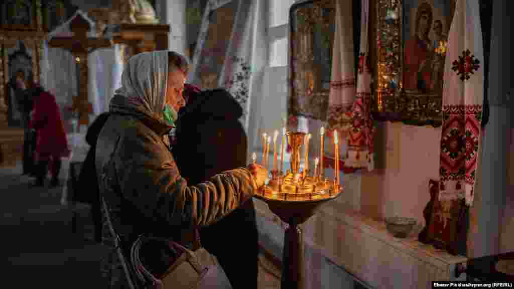 Традиційно, після закінчення служби, люди співали колядки та вітали один одного зі святом, що настає. Парафіяни відзначають, що святкова служба – це рідкісна можливість побачити знайомих під час пандемії. Кореспондент Крим.Реалії відвідав храм ПЦУ в Сімферополі.