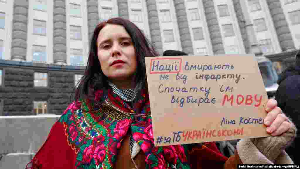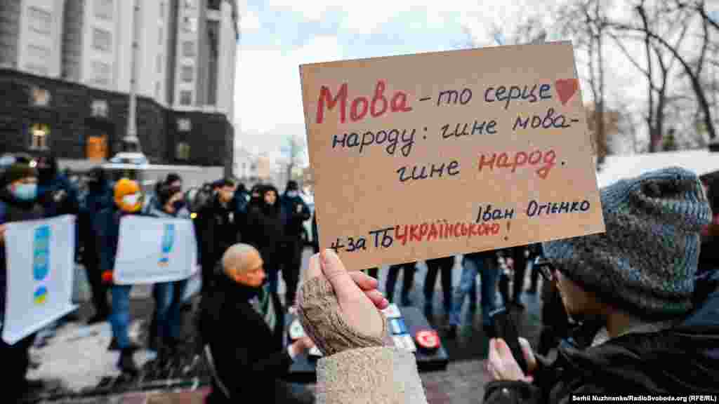 «За ТБ українською». Активісти вимагали під Кабміном виконання закону про мову (фоторепортаж)