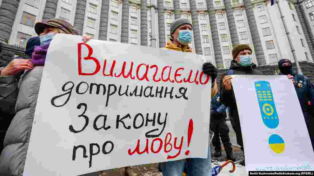 У Києві під стінами Кабінету міністрів України провели акцію «За ТБ українською!», учасники якої домагалися виконання закону про мову на телебаченні.
