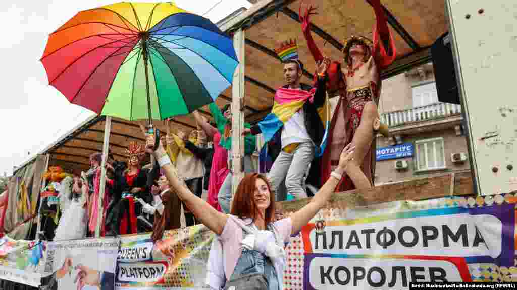 У ході взяли участь drag queens (артисти-чоловіки, що виступають у жіночих образах – ред.). Вони їхали на окремій платформі