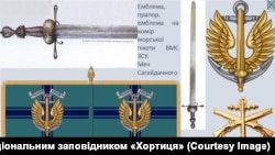«Цей меч зберігається в Польщі в Вавельському замку в Кракові. Його подарував гетьману Петру Конашевичу Сагайдачному королевич Владислав IV після славнозвісної перемоги під Хотином. Тоді козацьке військо під проводом Сагайдачного зіграло ключову роль у перемозі над дуже потужним турецьким військом. На знак подяки за це польський королевич подарував меч Петру Сагайдачному. І цей меч і є головним символом в емблемі нашої морської піхоти», – розповідає історик.