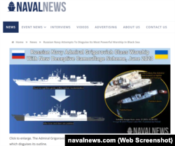«ВМФ Росії намагається замаскувати свій найпотужніший військовий корабель у Чорному морі» («Russian Navy Attempts To Disguise Its Most Powerful Warship In Black Sea») – стаття під такою назвою вийшла на англомовному сайті Naval News).