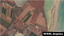 До середини березня на знімку із супутника вже видно розгалужену систему фортифікацій з двох боків від траси Е-105 та біля озера Сиваш.