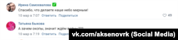 У соцмережі «ВКонтакте» підписники Сергія Аксьонова по-різному реагують на його публікації про оборонні споруди у Криму. Хтось висловлює подяку, інші не розуміють, чим допоможуть окопи. Є такі, хто просто ділиться переживаннями та страхами.