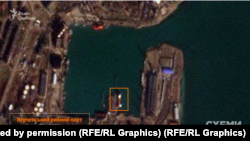 Крим.Реалії за допомогою журналістів проєкту української служби Радіо Свобода «СХЕМИ» отримали супутниковий знімок Planet Labs за 2 лютого, на якому видно, що цього дня невідомий танкер справді перебував біля причалу Керченського морського рибного порту.