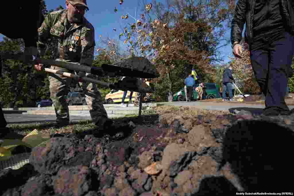 У парку Нивки, біля метро Берестейська відкрили пам’ятний знак жителям Шевченківського району, які загинули у війні на сході України. На сьогоднішній день це – 38 людей. Також у пам’ять про полеглих висадили 38 дерев. Участь у заході взяли ветерени АТО, медики-волонтери ПДМШ (Перший добровольчий мобільний шпиталь ім. Миколи Пирогова), активісти, музиканти та представники районної влади.