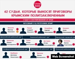 Правозахисна організація КримSOS створила реєстр із 42 суддів, які виносять вироки та розглядають справи кримських політв'язнів. Про це правозахисники повідомили Крим.Реалії.