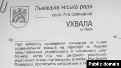 Громадські активісти наполягли на тому, щоб заборонити у Львові виступи українським виконавцям, які концертують у Росії. І редакційна комісія чітко це виписала в ухвалі. Відтак, у Львові заборонено виступати «представникам українського шоу-бізнесу, котрі під час де-факто російсько-української війни проводять концерти та беруть участь у розважальних заходах на території Росії, при цьому відкрито не підтримуючи у будь-який спосіб проведення Антитерористичної операції». Тобто, якщо хтось у час військового конфлікту в Україні побував з концертом у Росії чи буде, то, згідно з рішенням міськради, йому мають заборонити гастролі у Львові. Навіть, якщо це улюблений виконавець львів’ян. З цим положенням погоджувались не всі депутати міськради. А саме представники фракції «Самопоміч» вважали, що українські виконавці, виступаючи у Росії, можуть пропагувати Україну, допомогти росіянам зрозуміти ситуацію на Донбасі. Водночас більшість обранців переконані, що у час проведення АТО неприпустимо заробляти гроші у Росії.
