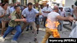 У центрі Сімферополя 3 серпня активіст «галявини протесту» «Стрілецька» намагався вчинити акт самоспалення, повідомляє кореспондент Крим.Реалії.