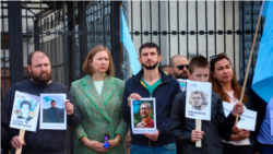 Акція під посольством Росії в Києві через затримання в Криму кримських татар. 5 вересня 2021 року