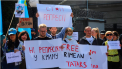 Біля будівлі посольства Росії в Києві 5 вересня пройшла акція на підтримку кримських татар, затриманих у Криму 3-4 вересня.