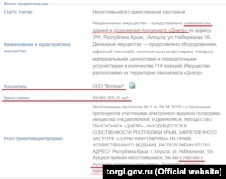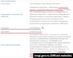 Як повідомляє російський федеральний портал торгів, заявка цієї фірми виявилася єдиною на аукціоні, тому конкурсна комісія вирішила укласти договір купівлі-продажу саме з нею.