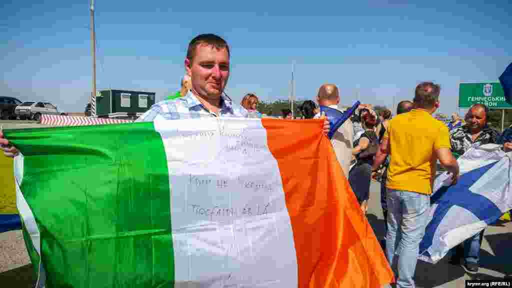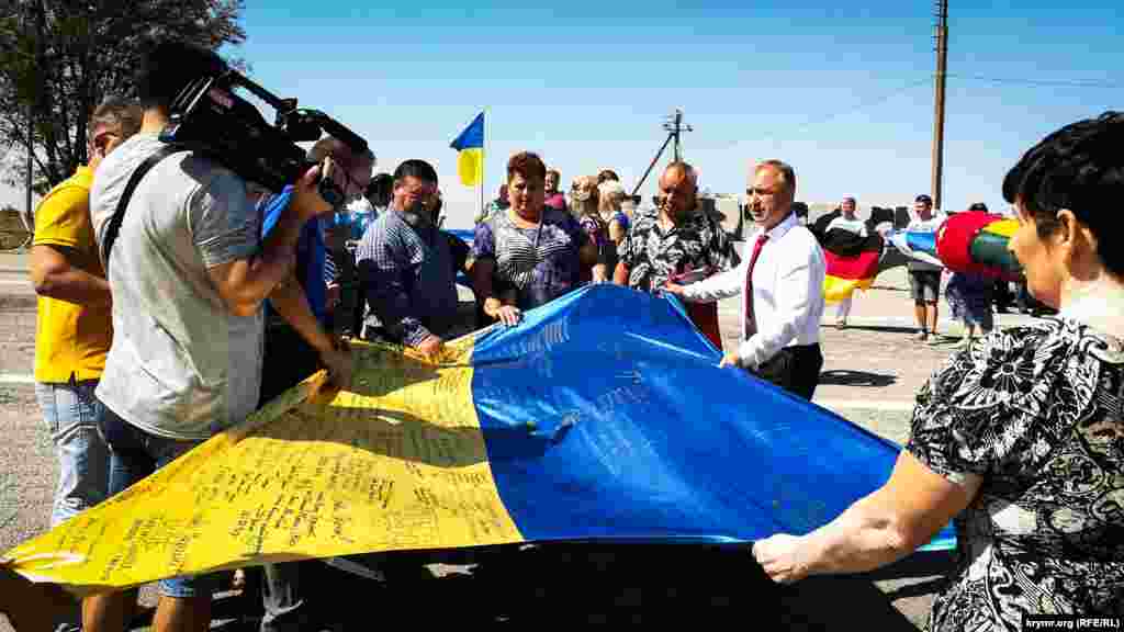 В акції біля контрольного пункту «Чонгар» взяли участь представники місцевої влади, громадських організацій, регіонального Меджлісу кримськотатарського народу Херсонської області. Учасники заходу залишили свої побажання на прапорах, підписи поставили також представники Національної поліції і Держприкордонслужби України.