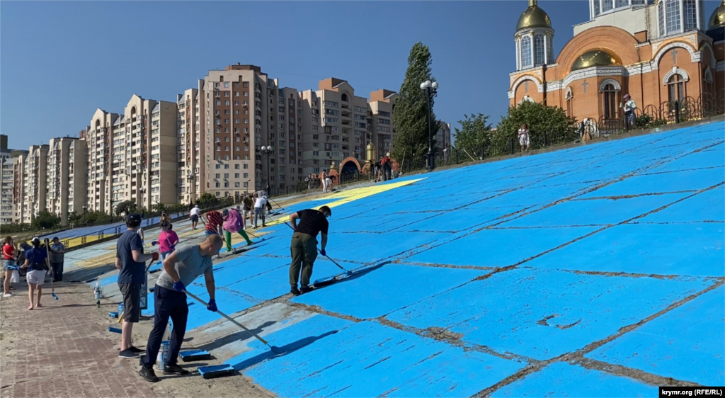 У столиці України оновили кольори великого кримськотатарського прапора. Вперше національний символ народу нанесли на бетонні плити Оболонської набережної Києва ще у 2015 році. Акцію провели напередодні Міжнародного дня корінних народів світу, який щороку відбувається 9 серпня.