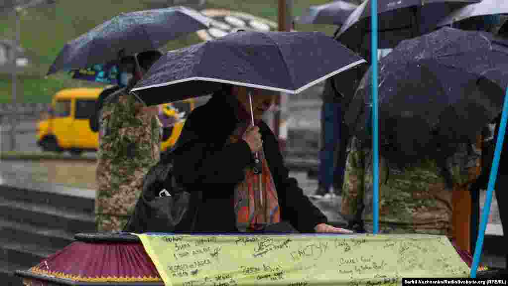 Прощалися із чоловіком на тому ж місці, де він вчинив акт самоспалення. У ніч на 11 жовтня Микола Микитенко підпалив себе на майдані Незалежності в Києві.