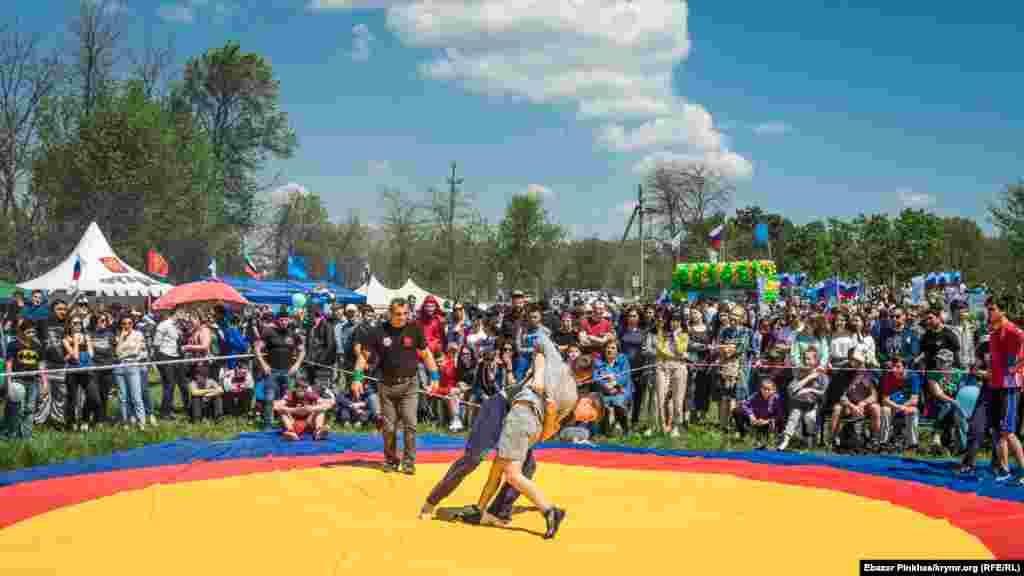 Кожен район Криму в критих наметах представляв на святкуванні пам'ятки свого регіону. На встановленій сцені тим часом проходили виступи фольклорних ансамблів.