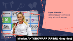 У фінальній зустрічі (вагова категорія до 48 кілограмів) на світовій першості Дар'я Білодід перемогла чинну на той час чемпіонку Фуну Тонакі з Японії іппоном, тобто поклавши на лопатки. Тож українка у віці 17 років 11 місяців стала наймолодшою чемпіонкою світу в історії дзюдо. Попередній рекорд належав японці Рійоко Тамурі – 18 років 1 місяць.